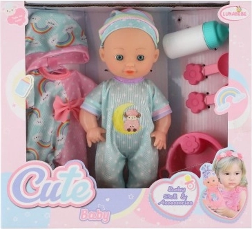 Lutka dojenček s trdnim telesom in dodatki, 25 cm
