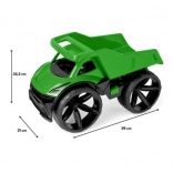 Naložite pesek, kamenčke ali igrače in z enim gibom udobno izsipajte vsebino. Zaradi dolžine 59 cm je prostor za tovor res radodaren, igra pa še bolj realistično doživetje.
