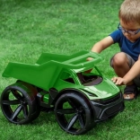 Prostorna prekucna kesa s priročnim ročajem olajša nalaganje in izsipavanje peska, listja ali manjših igrač. Kombinacija kontrastnih tekstur in moderne kabine spodbuja domišljijo, razvoj fine in grobe motorike ter ustvarjalno igro.