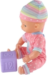 Ta čudovita punčka dojenček s trdim telesom je odličen spremljevalec za vsakodnevno igro. Zaradi kompaktne velikosti 25 cm jo otroci zlahka držijo in enostavno se prilega otroškim vozičkom in posteljicam. Pakiranje vključuje tudi igralno kocko, ki popestri igre ter spodbuja učenje števil in barv.