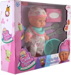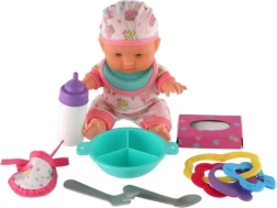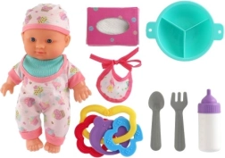 Ta punčka dojenček velikosti 22 cm je odličen družabnik za vsakodnevno igro. Zaradi čvrstega plastičnega telesca dobro drži obliko in se zlahka vzdržuje čista. Set vključuje vse potrebno za skrb za dojenčka – od hranjenja do zabave.