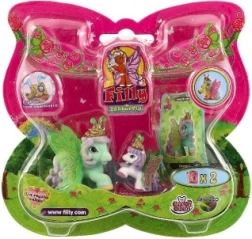 Set Filly Butterfly prinaša dva očarljiva konjička s krilci in kronami, ki polepšata vsako otroško kraljestvo. Zaradi kombinacije nežnih materialov in pisanih detajlov so figurice odlične za kreativno pripovedovanje zgodb in razvoj otroške domišljije.