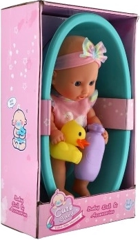 Prisrčna punčka dojenček v banjici z račko bo razveselila vsakega malega ljubitelja kopanja. Priloženi so praktični dodatki za igro kopanja in nego. Trdno plastično telo, banjica z račko in enostavno vzdrževanje naredijo ta komplet odlično darilo za otroke od 3 let naprej.