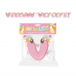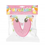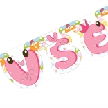 Girlanda je primerna za notranje prostore in za vrtne zabave pod nadstreškom. Rožnat odtenek se odlično ujema z baloni, konfeti in drugimi dodatki v pastelnih barvah.