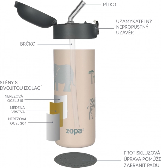 Silikonski jedilni komplet za otroke z motivom sove, 8 delov, bež