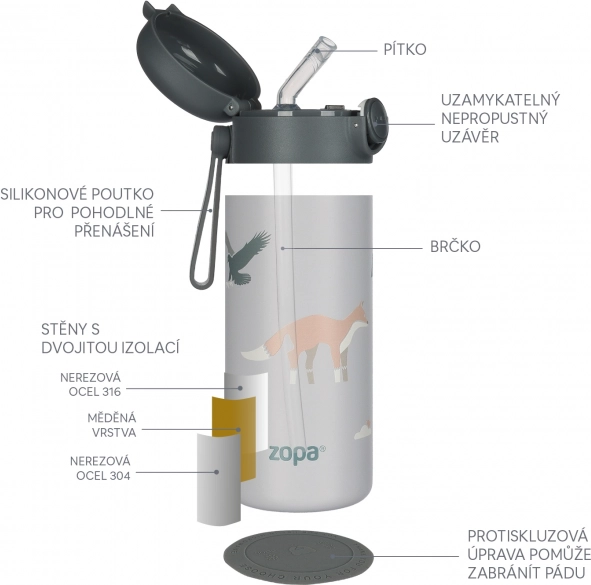 Termovka za tekočine s slamico in silikonskim držalom 350 ml, Dino