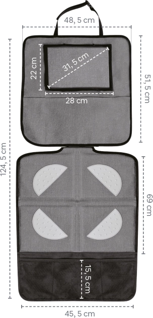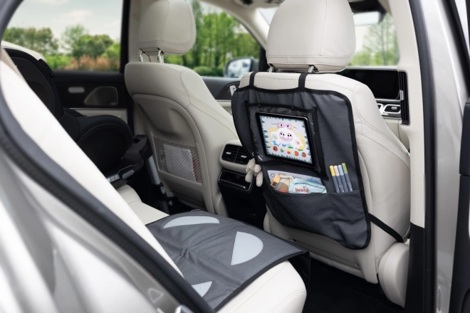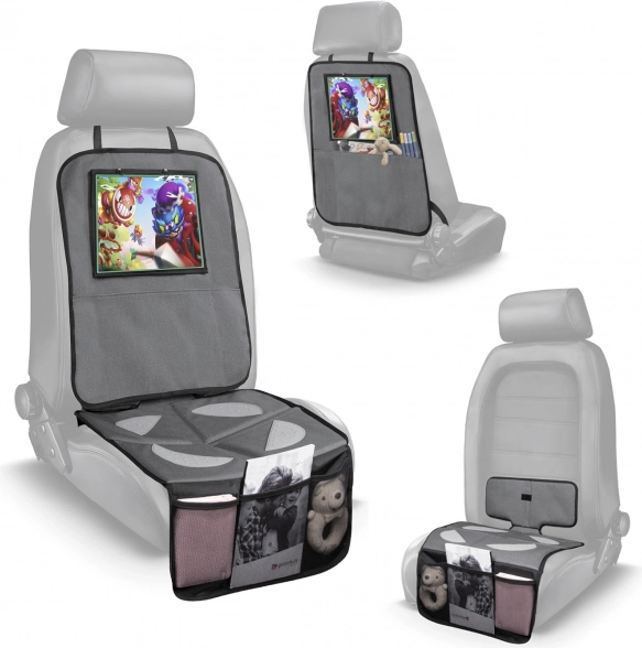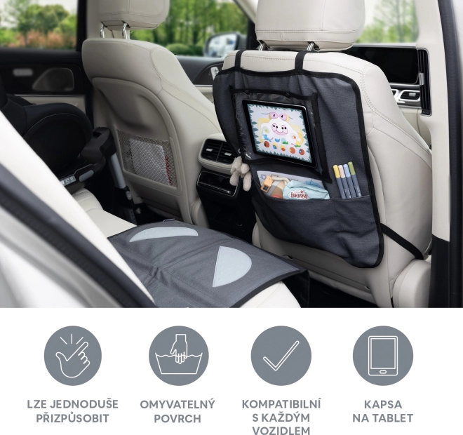 Zaščita sedeža pod otroški avtosedež z žepom za tablico, pralna, siva