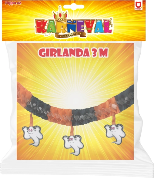 Ustvarite pravo vzdušje noči čarovnic s črno-oranžno girlando, okrašeno z ljubkimi duhovi. Lahek papirnat material omogoča preprosto obešanje in prostoru doda učinkovit sezonski pridih.
