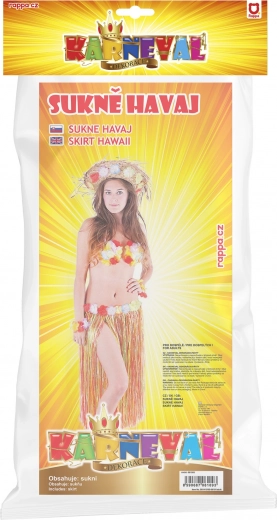 Odlično krilo v slogu »Havaji« ne sme manjkati v nobeni damski garderobi! Ta senzacionalni kos je idealen dodatek za pustovanje ali za tipični havajski ples »HULA«. Krilo, dolgo 72 cm, je izdelano iz tankih plastičnih trakov v različnih barvah in okrašeno z barvitimi cvetnimi listi. Super! Postani zvezda karnevalske zabave s tem havajskim krilom ali si ustvari celoten havajski kostum! Paket vsebuje samo krilo.