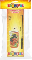 V kompletu je ovalni lampijon s premerom 15 cm in plastična palica dolžine 40 cm. Lampijon lahko uporabljate z čajno svečko zahvaljujoč nosilcu v spodnjem delu ali pa ga prižgete s pomočjo LED palice (zahteva 2× AA bateriji, nista priloženi). Odlično za dekoracijo, otroške povorke in domači okras.