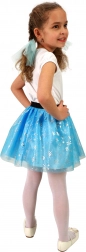To očarljivo otroško tutu krilo vsako deklico spremeni v pravo zimsko princeso. Lahkoten in puhast til v modrem odtenku dopolnjujejo bleščeče snežinke, ki čudovito odbijajo svetlobo. Zahvaljujoč elastičnemu pasu se krilo zlahka obleče in je udobno za nošenje ves dan.