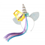 Prebudite otroško domišljijo s tem čarobnim naglavnim trakom v slogu samoroga. Bel naglavni trak z rogom, srebrnimi ušeski, okrasnim trakom in mavričnim pramenom las je idealen za pust, rojstnodnevne zabave in vsakodnevno preoblačenje. Primerno za otroke od 3 let.