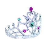 Srebrna tiara z rožnatimi in zelenimi kamni prinaša eleganco in sijaj. Idealna kot kostumski dodatek ali za igro princesk.