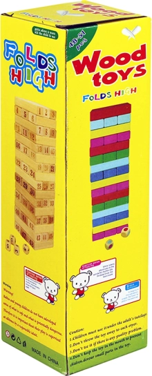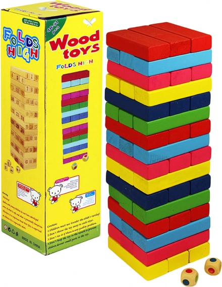 Barvna lesena stolp za otroke, 48 kock + kocki za metanje, razvija motoriko in strateško razmišljanje.