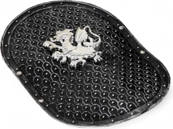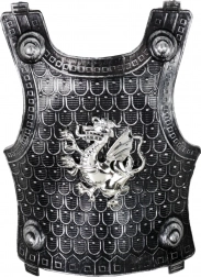 Vpadljiv dizajn z zmajskimi simboli na oklepu in ščitu bo navdušil vsakega malega viteza.