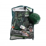 Komplet vsebuje vse, kar potrebujete za vojaško igro - jopič, čelado, orožje in druge dodatke.