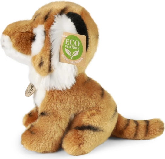 Predstavljamo plišastega tigra, katerega telesce je napolnjeno z materialom ECO-FRIENDLY, in sicer z recikliranimi PET plastenkami. Ta izdelek ni le okolju prijazen, temveč tudi varen in na otip nerazločljiv od standardnih igrač.