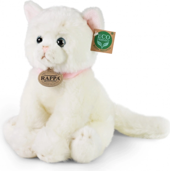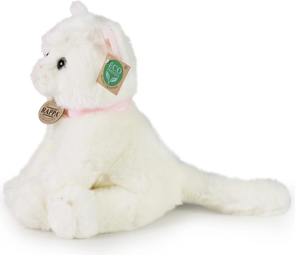 Predstavljamo vam čarobno plišasto mačko znamke RAPPA, izdelano z velikim poudarkom na detajlih in prijaznosti do narave. Ta bela mačka je opremljena z rožnatim ovratnikom, ki poudari njeno naravnost in igrivost.