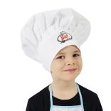 Kuharska kapa z napisom "Glavni kuhar" je nepogrešljiv dodatek za vsakega malega pomočnika v kuhinji! Ta modni kos ne sme manjkati nobenemu malemu kuharju pri kuhanju!