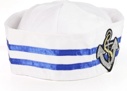 Dodajte otroškemu kostumu pravi pridih morja. Ta bela mornarska kapa z modrimi črtami in okrasnim sidrom je popoln dodatek za male mornarje. Lahek tekstilni material je prijeten na glavi in dobro drži obliko.