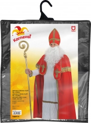 Ta eleganten kostum svetega Miklavža za odrasle pričara pristno praznično vzdušje med decembrskimi slavji. Dolgo belo oblačilo dolžine približno 140 cm dopolnjuje intenzivno rdeč plašč z ovratnikom, izrazita šerpa s križem in tradicionalna kapa. Zaradi udobnih materialov in premišljenega kroja se kostum zlahka obleče in odlično ohranja obliko skozi celoten nastop.