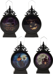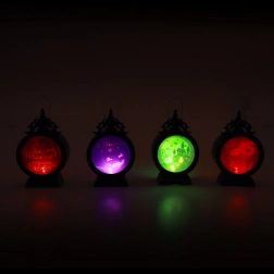 Ta stilska svetilka za noč čarovnic je zasnovana kot okrogel lanterni poudarek za okrasitev notranjih prostorov in zabav. Po vklopu samodejno menja barve in ustvari privlačen svetlobni učinek, ki poudari dekor in vsakemu prostoru doda skrivnostno atmosfero.