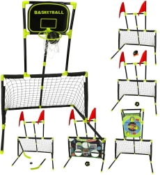 Ta celovit komplet omogoča treniranje različnih športnih disciplin brez potrebe po nakupu dodatne opreme. S tem kompletom se bo vaš otrok naučil: