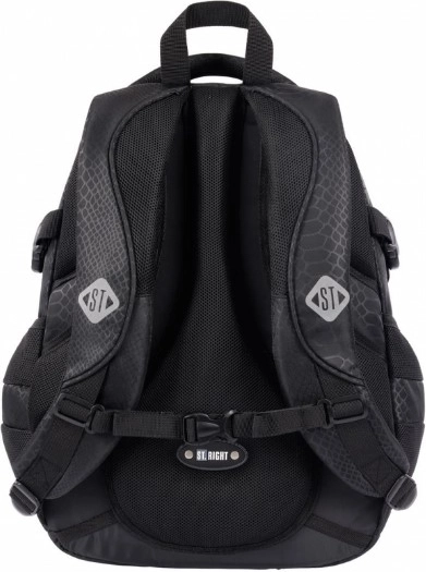 Minimalističen črn videz s subtilnim “snake” vzorcem je univerzalen in brezčasen. Nahrbtnik je idealen za učence in študente, ki želijo združiti funkcionalnost, udobje in slog.