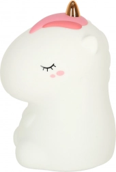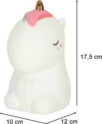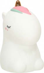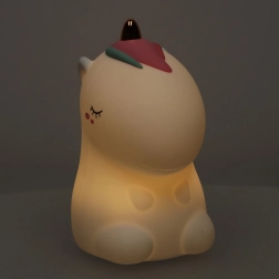 Ta mehka LED svetilka v obliki samoroga iz ABS in silikona pričara v sobici prijetno vzdušje. Podnevi okrasi otroški kotiček, zvečer pa s svojo nežno svetlobo odžene strah pred temo in olajša uspavanje brez motenja spanca.