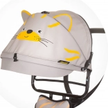 Trokolesnik je opremljen z zabavnim dizajnom v slogu tigra, vključno s podrobnostmi ušes na strehi.