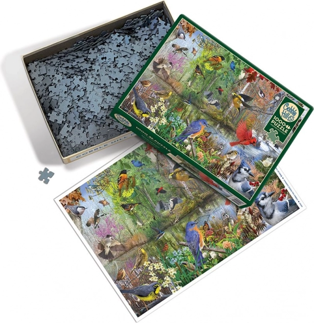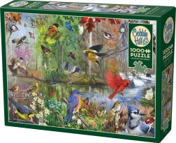 Odkrijte naravno lepoto na ilustraciji, polni pisanih ptic ob jezeru, kjer se prepletajo pomlad, poletje, jesen in zima. Sestavljanka iz kolekcije COBBLE HILL uporablja nepravilni izrez, zato koti in robovi koščkov niso v isti osi in ima vsak košček svoj značaj. Rezultat je bolj privlačno sestavljanje in daljša igralna izkušnja.