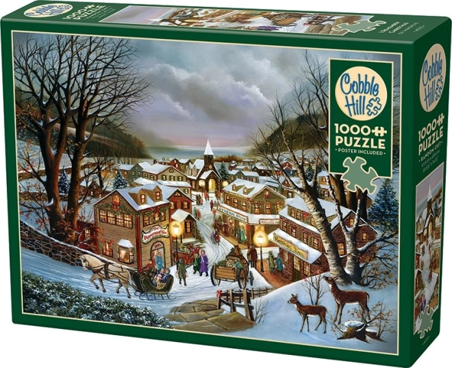 Božična sestavljanka COBBLE HILL, 1000 kosov, z neregularnim izsekom in priloženo predlogo. Višja zahtevnost, mere po sestavi pribl. 67,6 × 48,9 cm. Odlično darilo.