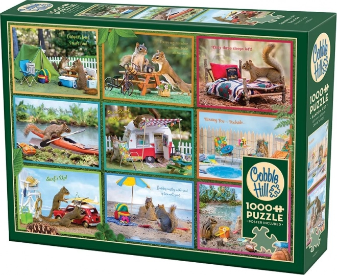 Odkrijte vrhunsko sestavljanko COBBLE HILL z motivom »Veverice na počitnicah«, ki bo razveselila vsakega ljubitelja sestavljank. Posebno izsekavanje ne sledi standardni mreži, zato koti in robovi niso v eni osi, koščki pa imajo netradicionalne oblike. Takšna zasnova poveča zahtevnost in zabavnost, hkrati pa prinaša edinstven občutek ob dokončani sliki.