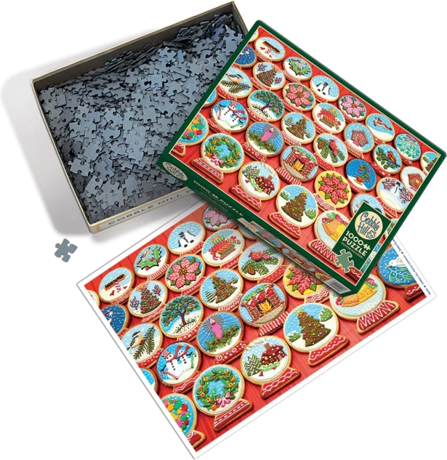 Sestavljanka COBBLE HILL 1000 koščkov z motivom božičnih piškotov. Edinstven izsek, višja zahtevnost, predloga v pakiranju. Dimenzije po sestavitvi 67,6 × 48,9 cm.