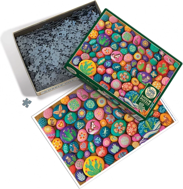 Puzzle Poslikani kamni jugozahoda od COBBLE HILL prinašajo edinstveno izkušnjo za vse ljubitelje puzzlov. Sestavljanje zaradi originalnih oblik kosov ne sledi klasični mrežni strukturi, kar povečuje težavnost in vašo pozornost med sestavljanjem.