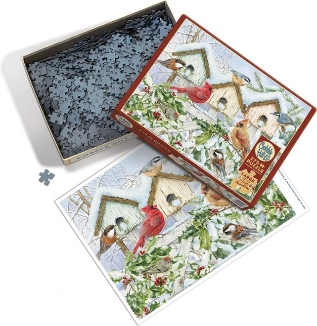Ta čudovita zimska sestavljanka z motivom ptičjih hišic in pevskih ptic prinaša sprostitev in prijeten izziv. Koščki povprečne velikosti približno 3 cm se udobno držijo, ne drsijo in zahvaljujoč edinstveni izsekanki COBBLE HILL ustvarjajo tekočo, zabavno izkušnjo brez stereotipne mreže.