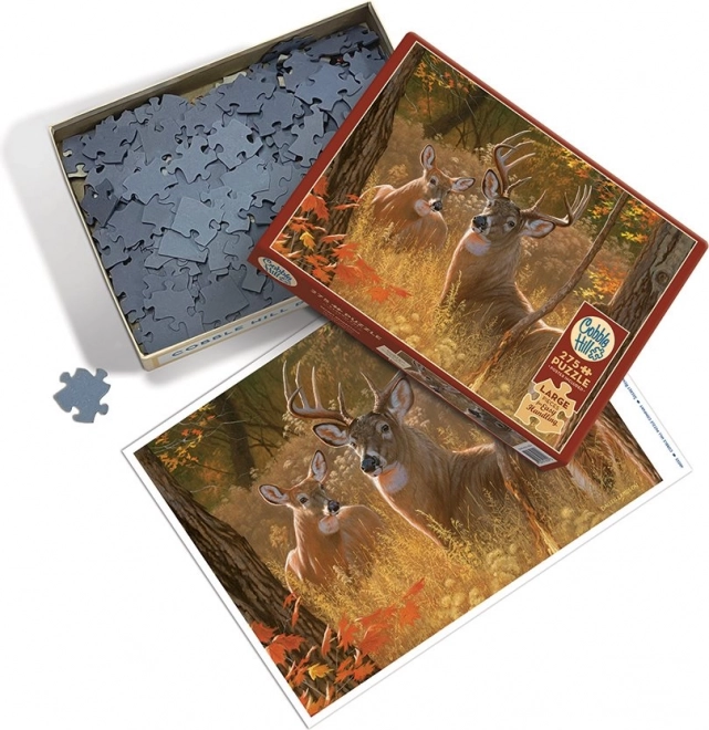 Potopite se v pomirjujoče vzdušje jesenskega gozda z dvema jelenoma v motivu »Tajno srečanje«. Sestavljanka z 275 izjemno velikimi kosi ponuja udobno sestavljanje brez kompromisov pri zabavi – vsak kos ima prijetno velikost okoli 3 cm, dobro se drži in ga je enostavno sestavljati.