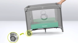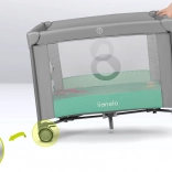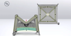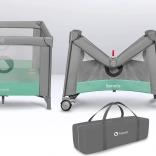 Del ograje je udobna penasta vzmetnica T25 z različno 3D površino in sistemom LockGuard, ki preprečuje nenamerno zlaganje. Za enostavno mobilnost ima ograja 2 kolesa z zavoro in praktično transportno torbo za udobno prenašanje.