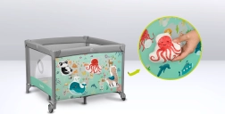 Ograja ima stranski vhod z zadrgo, kar omogoča enostaven dostop, njene zračne in prozorne stene pa omogočajo enostavno spremljanje otroka. Povišano dno zagotavlja boljše zračenje in ščiti pred mrazom s tal. Konstrukcija prav tako ne vsebuje ostrih robov, kar podpira varne poskuse otrokovih prvih korakov.
