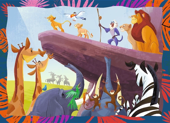Odkrijte zabavo za otroke s sestavljankami 4 v 1, navdihnjenimi s pravljico Levji kralj. Vsaka škatla vsebuje 4 samostojne sestavljanke z različno številčnostjo koščkov, zato bodo uživali mlajši in starejši otroci. Največja slika meri 28,5 × 20,5 cm. Izdelano na Poljskem iz okolju prijaznih materialov.