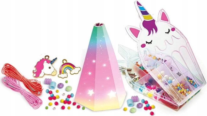 Komplet za male oblikovalke, ki obožujejo barve, bleščice in magični svet samorogov. Zahvaljujoč elastičnim vrvicam in raznolikim kroglicam boste zlahka ustvarili izvirne zapestnice zase in za prijateljice. Obeski samoroga in mavrice dodajo vsakemu kosu pravljičen pridih.