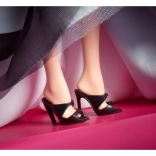 - Vodopadna pričeska s čopom, mačja sončna očala, modra senčila za oči in rdeče ustnice se poklanjajo prvi Barbie! Dolge črne rokavice dodajo njenemu videzu pridih glamurja.