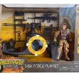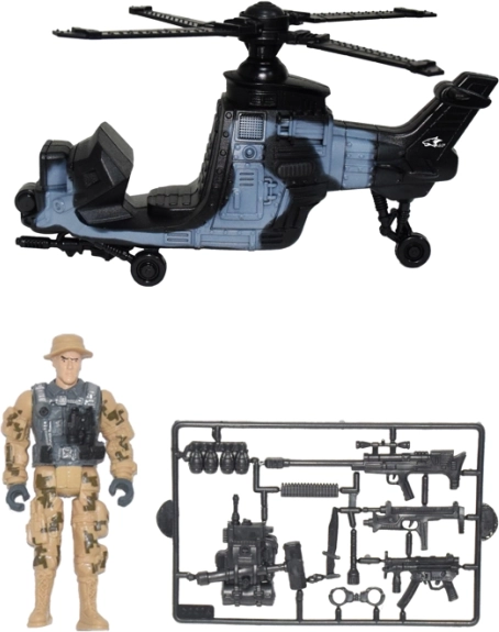 Del kompleta je figurica vojaka v kamuflažnem oblačilu ter snemljiva oprema, kot je orožje.