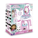 Toaletka 2 v 1 Mačja hiša Gabi otrokom ponuja ure zabave pri igranju pretvarjanja. Vsebuje ogledalo, stolček in 12 modnih dodatkov, ki so navdihnjeni z risanko Gabby19s Dollhouse.