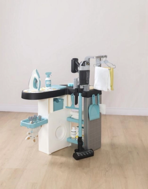 Celovit komplet nudi vse potrebno za domišljijsko igro in razvoj veščin na področju pospravljanja in skrbi za gospodinjstvo. Vključeni so pristni dodatki, kot so koš za perilo, obešalniki, pa tudi realističen zvok sesalnika za boljšo igralno izkušnjo.