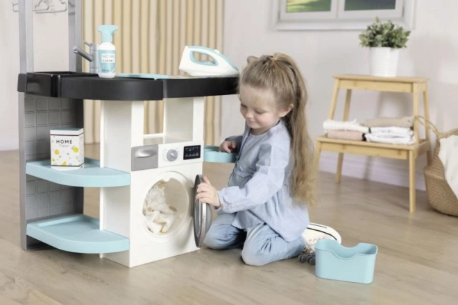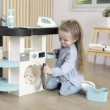 Otroci lahko uporabljajo štiri različne dele: pralni stroj, umivalnik, sušilno površino in likalno desko. Vsak del je zasnovan za ustvarjanje pristnih igralnih situacij.