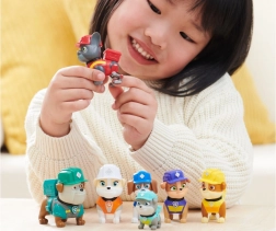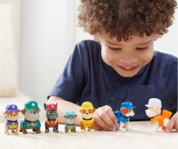 Vsaka figurica ima avtentično gradbeno opremo, čelado in značko, da igra ustreza prizorom iz PAW Patrol: Rubble in njegova ekipa.