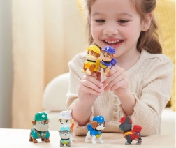 Odkrijte najhitrejši način, kako zbrati celotno ekipo gradbenih junakov iz PAW Patrol: Rubble in njegova ekipa. V paketu so Rubble, Wheeler, Mix, Charger, Motor, teta Žerjavova in dedek Prod. Vsaka figurica meri približno 5 cm, stoji samostojno in navduši z živahnimi barvami, čeladami, nahrbtniki in zvestimi detajli z ekrana.
