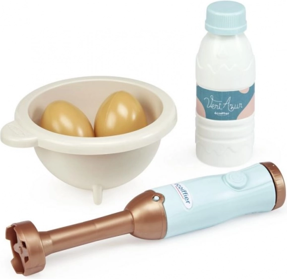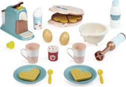 Ustvarite popoln otroški zajtrk z večnamenskim setom, ki združuje tri priljubljene kuhinjske aparate v enem: kavni aparat, pekač za vaflje in palični mešalnik. Zahvaljujoč bogati opremi lahko otroci zlahka posnemajo pripravo napitkov in dobrot, razvijajo fino motoriko in se učijo sodelovanja.