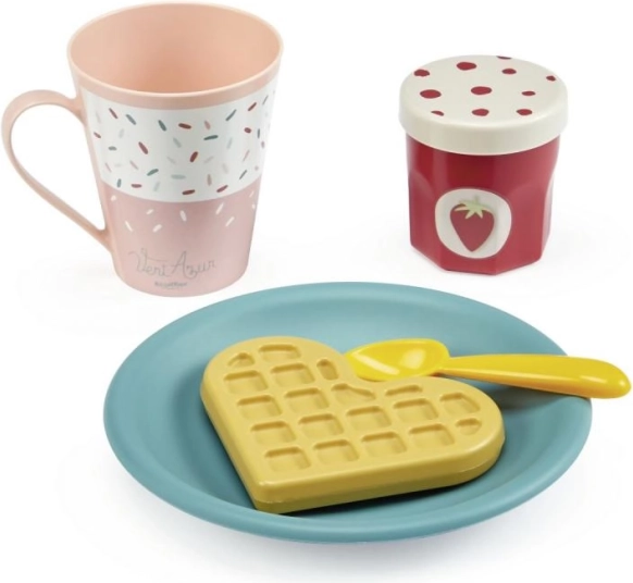 - Bogata oprema: 4 vaflji, skodela, 2 jajci, 2 kapsuli, 2 skodelici, steklenica mleka, smetana, marmelada